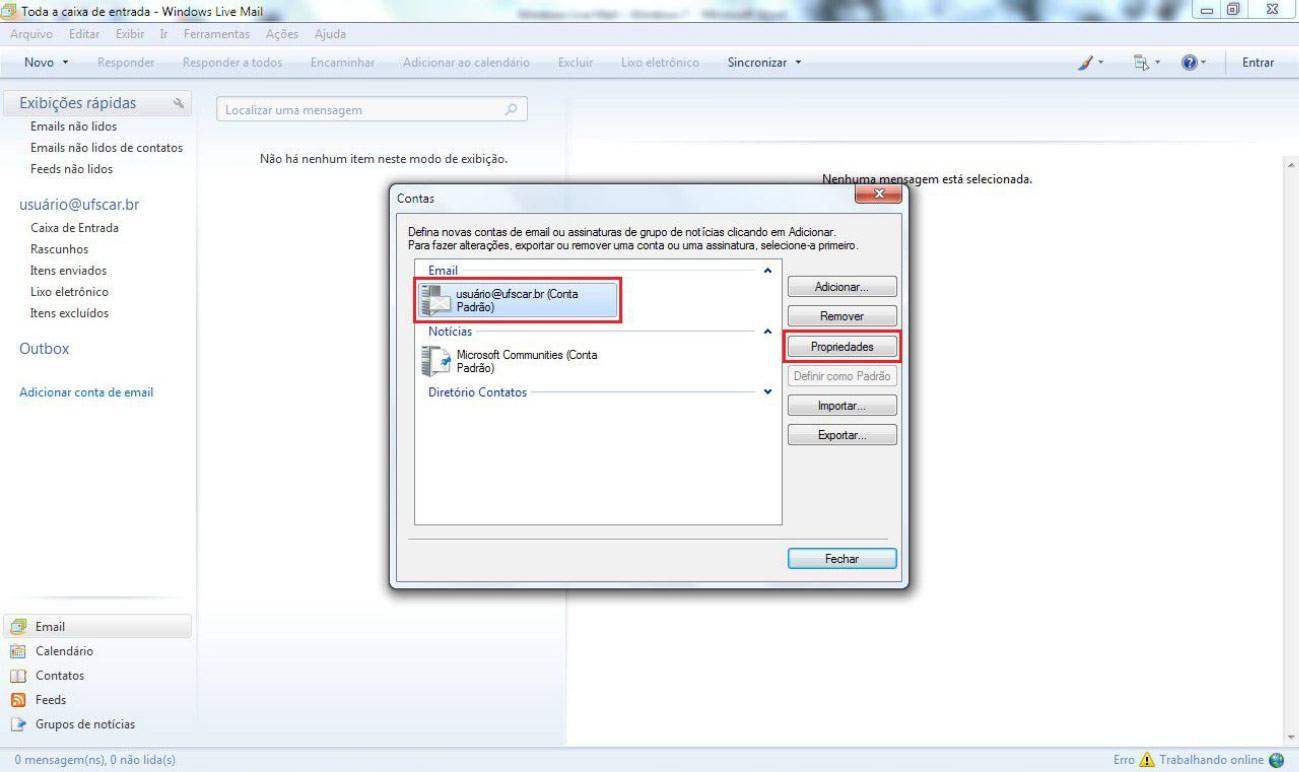 Pronto! Seu cliente de E-mail Windows Live Mail já está configurado